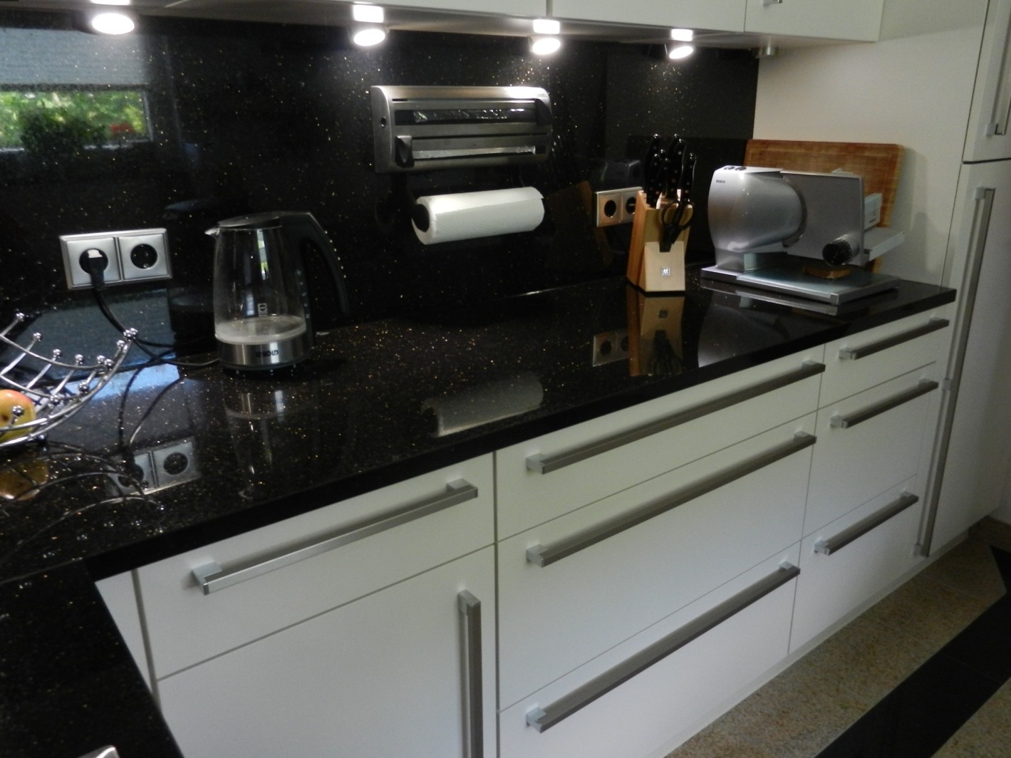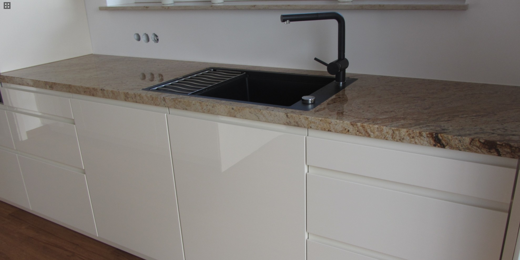 Rückwand, Arbeitsplatte und Fußboden (auf Wunsch in gleicher Optik)