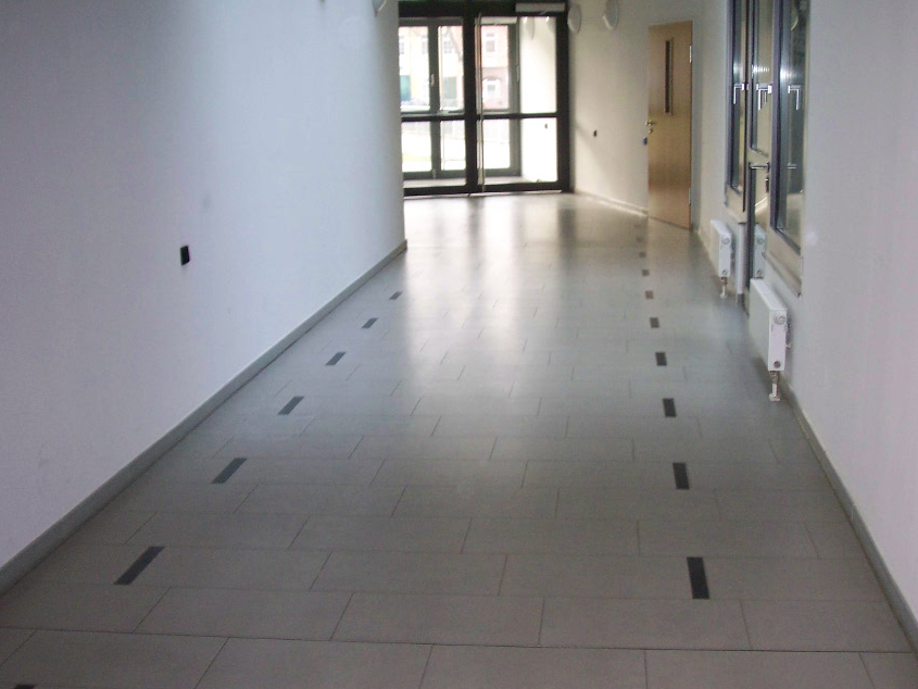 934 m² Bodenplatten mit Friesen und Blindenleitstreifen